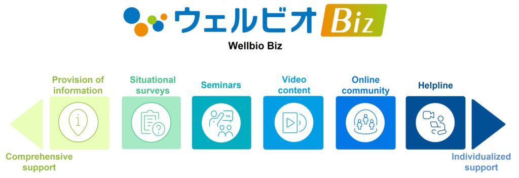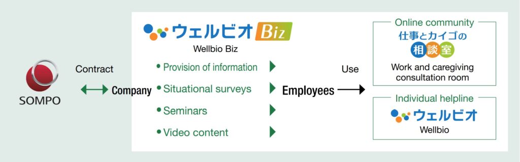 More recently, demographic changes, including an aging population and more households becoming dual-income, have made balancing work and caregiving an urgent social issue. In response, we launched “Wellbio Biz,” a service that help employers support their employees balance work and caregiving. The first phase caters to large enterprises, helping them build an environment in which employees can continue working with confidence, even when caregiving needs arise.