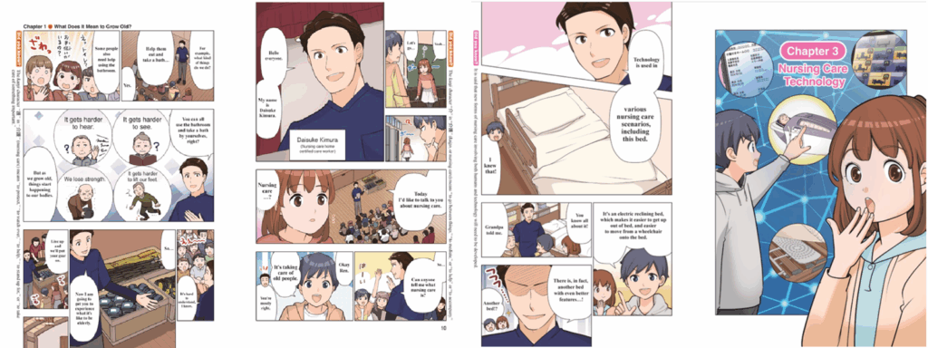 Japan faces a shortage of nursing care workers due to its declining birthrate and growing demand driven by an aging population. It is crucial for Japan’s future that children be shown the appeal and value of careers in nursing care. Manga, beloved across generations in Japan, are a relatable way of doing that.