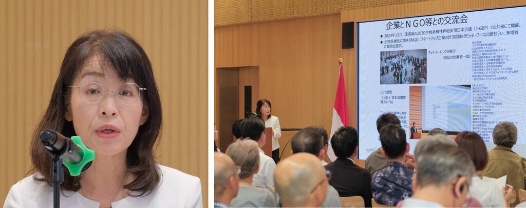 近年、世界では生物多様性枠組やネイチャーポジティブ移行戦略が進展しており、企業が環境リスクを経営戦略に統合し、環境保全を新たな機会として捉える動きが加速しています。生物多様性保全を実効的に推進するためには、「企画し、実行し、伝え、現場で行動する人」の育成が重要であり、専門人材育成や異業種連携が不可欠であると強調しました。CSOラーニング制度修了生がインドネシア環境省で活躍する姿は、こうした人材育成の確かな成果を示しています。本イベントが、日本とインドネシアの連携を深め、環境人材育成の輪を広げる一助となることへの期待を語りました。